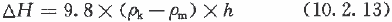 10.2.13 计算低压燃气管道阻力损失时,对地形高差大或高层建筑立管应考虑因高程差而引起的燃气附加压力。燃气的附加压力可按下式计算:
