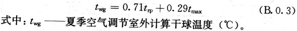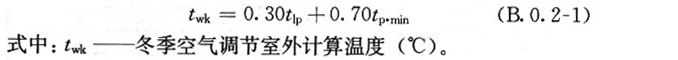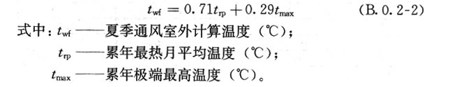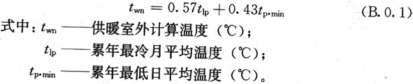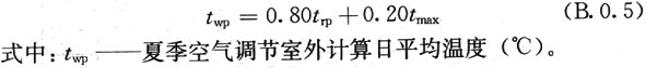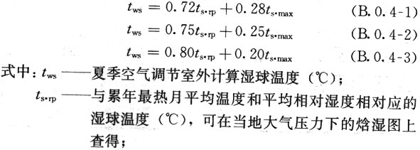 附录B 室外空气计算温度简化方法 B.0.1 供暖室外计算温度,可按下式确定(化为整数): B.0.2 冬季空气调节室外计算温度,可按下式确定(化为整数): 夏季通风室外计算温度,可按下式确定(化为整数): B.0.3 夏季空气调节室外计算干球温度,可按下式确定: B.0.4 夏季空气调节室外计算湿球温度,可按下列公式确定: B.0.5 夏季空气调节室外计算日平均温度,可按下式确定: