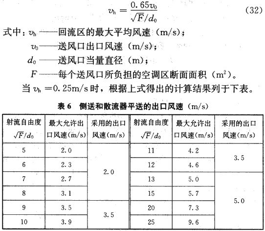 因此,侧送和散流器平送的出口风速采用2m/s~5m/s是合适的。