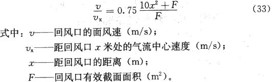 当回风口处于空调区上部,人员活动区风速不超过0.25m/s,在一般常用回风口面积的条件下,从上式中可以得出回风口面风速为4m/s~5m/s;当回风口处于空调区下部时,用同样的方法可得出条文中所列的有关面风速。