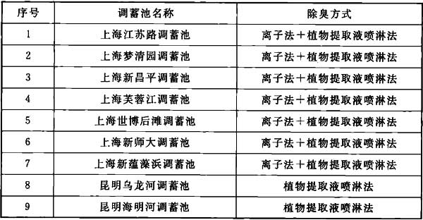 表7 上海、昆明部分已建调蓄池除臭方式
