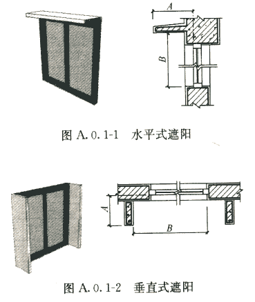 式中:SDS、SDH、SDV、SDB——分别为建筑自遮挡、水平式、垂直式、挡板式的建筑外遮阳系数,可按本标准第 A. 0.1条规定计算;当组合中某种遮阳形式不存在时,可取其建筑外遮阳系数值为1。