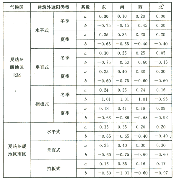 表 A.0.1 建筑外遮阳系数计算公式的系数