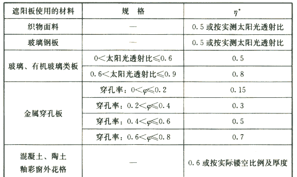 η*——遮阳板(构造)材料的透射比,按表A. 0.3选取。