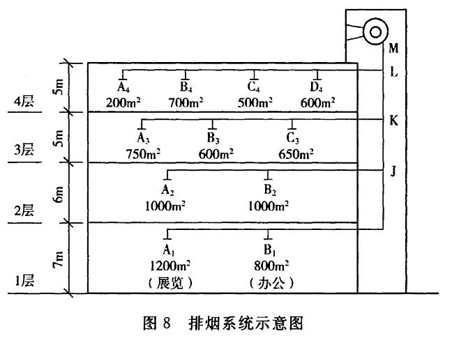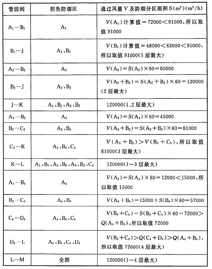 4.6.4 当一个排烟系统担负多个防烟分区排烟时,系统排烟量可参照图8和表3的计算示例进行计算,但为了确保系统可靠性,一个排烟系统担负防烟分区的个数不宜过多。