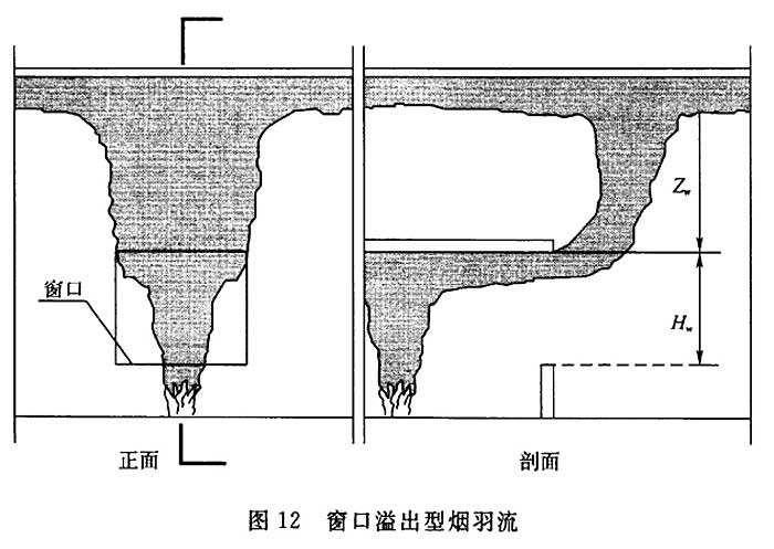 本条第3款,窗口型烟羽流公式适用于通风控制型火灾(即热释放速率由流进室内的空气量控制的火灾)和可燃物产生的火焰在窗口外燃烧的场景,并且仅适用于只有一个窗口的空间。