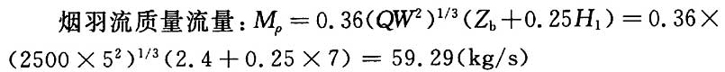 环境温度20℃,空气密度为1.2kg/m3,排烟量:V=MpT/ρ0T0=[60.31×(293.15+45.97)]/(1.2×293.15)=58.1(m3/s)