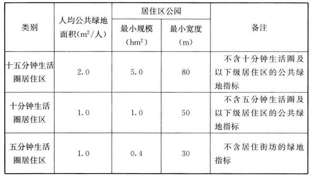 游园指标与居住区公园指标衔接。
