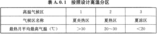 A.0.1 按照设计高温分区指标,一级区划分为3个区,应符合表A.0.1的划分。