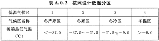 A.0.2 按照设计低温分区指标,二级区划分为4个区,应符合表A.0.2的划分。