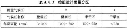 A.0.3 按照设计雨量分区指标,三级区划分为4个区,应符合表A.0.3的划分。