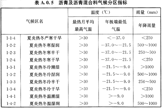 附录A 沥青路面使用性能气候分区