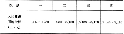 5.2.1 人均建设用地指标应按表5.2.1的规定分为四级。