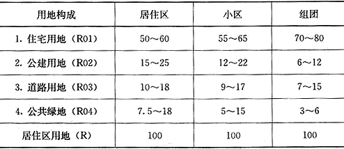 3.0.2 居住区用地构成中,各项用地面积和所占比例应符合下列规定: