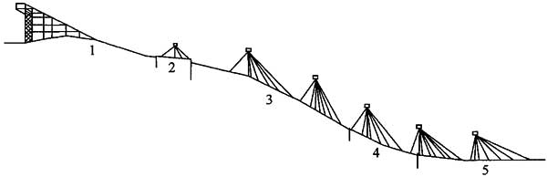 图6.2.13-1 跳台滑雪场地照明灯具布置(侧视图)