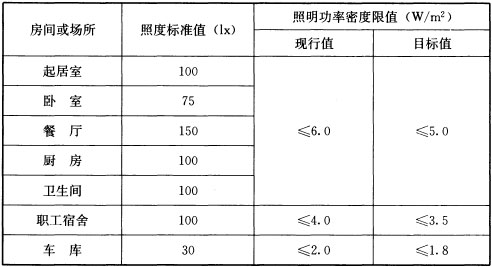 6.3.1 住宅建筑每户照明功率密度限值宜符合表6.3.1的规定。