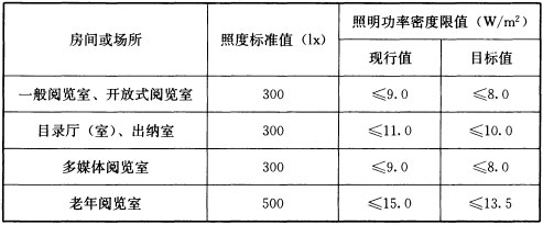 表6.3.2 图书馆建筑照明功率密度限值