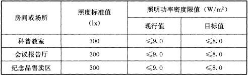 2 科技馆建筑照明功率密度限值应符合表6.3.8-2的规定;