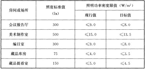 1 美术馆建筑照明功率密度限值应符合表6.3.8-1的规定;