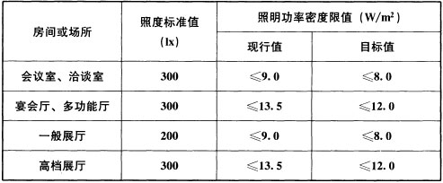 6.3.8 博览建筑照明功率密度限值应符合下列规定: