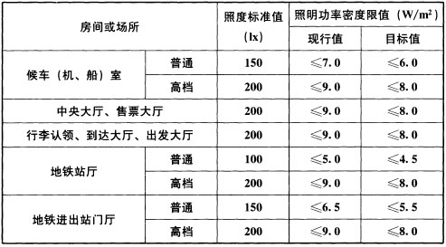 表6.3.10 交通建筑照明功率密度限值