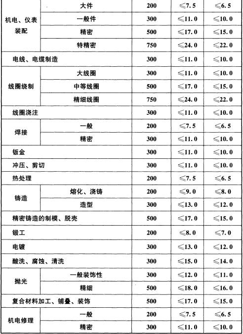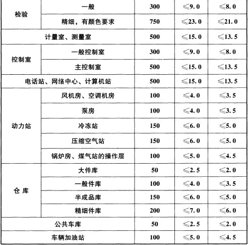 表6.3.12 工业建筑非爆炸危险场所照明功率密度限值