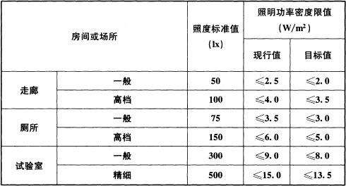 表6.3.13 公共和工业建筑非爆炸危险场所通用房间或场所照明功率密度限值