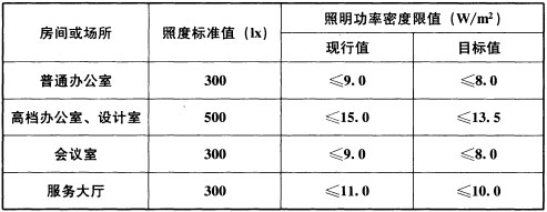 表6.3.3 办公建筑和其他类型建筑中具有办公用途场所照明功率密度限值