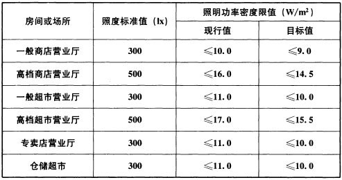 表6.3.4 商店建筑照明功率密度限值