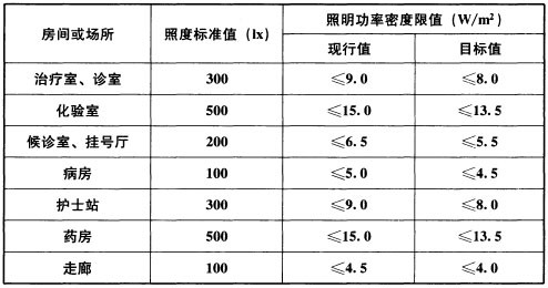 表6.3.6 医疗建筑照明功率密度限值