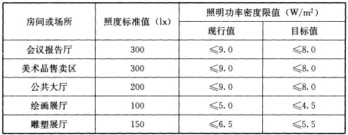 表6.3.8-1 美术馆建筑照明功率密度限值