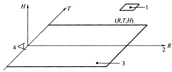 图A.0.1-2 以观察者位置为原点的位置指数坐标系统(R,T,H)