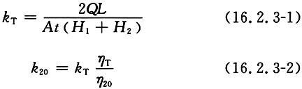 16.2.3 常水头渗透试验渗透系数应按下列公式计算: