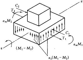 8.4.7 N.W.Hanson和J.M.Hanson在他们的《混凝土板柱之间剪力和弯矩的传递》试验报告中指出:板与柱之间的不平衡弯矩传递,一部分不平衡弯矩是通过临界截面周边的弯曲应力T和C来传递,而一部分不平衡弯矩则通过临界截面上的偏心剪力对临界截面重心产生的弯矩来传递的,如图32所示。因此,在验算距柱边h0/2处的冲切临界截面剪应力时,除需考虑竖向荷载产生的剪应力外,尚应考虑作用在冲切临界截面重心上的不平衡弯矩所产生的附加剪应力。本规范公式(8.4.7-1)右侧第一项是根据现行国家标准《混凝土结构设计规范》GB 50010在集中力作用下的冲切承载力计算公式换算而得,右侧第二项是引自美国ACI 318规范中有关的计算规定。