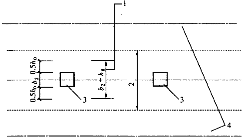1—有效宽度范围内的钢筋应不小于柱下板带配筋量的一半,且能承担αmMunb;2—柱下板带;3—柱;4—跨中板带