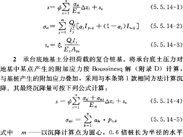 5.5.14 对于单桩、单排桩、桩中心距大于6倍桩径的疏桩基础的沉降计算应符合下列规定: