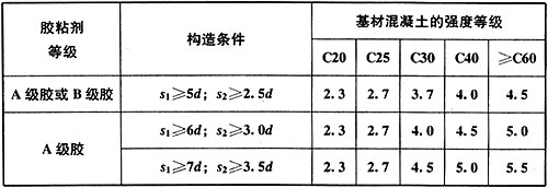 ƒbd——植筋用胶粘剂的粘结抗剪强度设计值(N/mm2),按本规范表15.2.4的规定值采用。