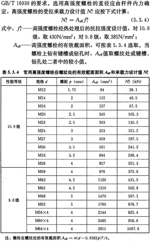 5.3.5 受压杆件的连接螺栓直径,可按其内力设计值绝对值求得螺栓直径计算值后,按表5.3.4的螺栓直径系列减少1~3个级差。