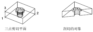定义一点从而确定图形将保留剖切实体的哪一侧。该点不能位于剪切平面上。